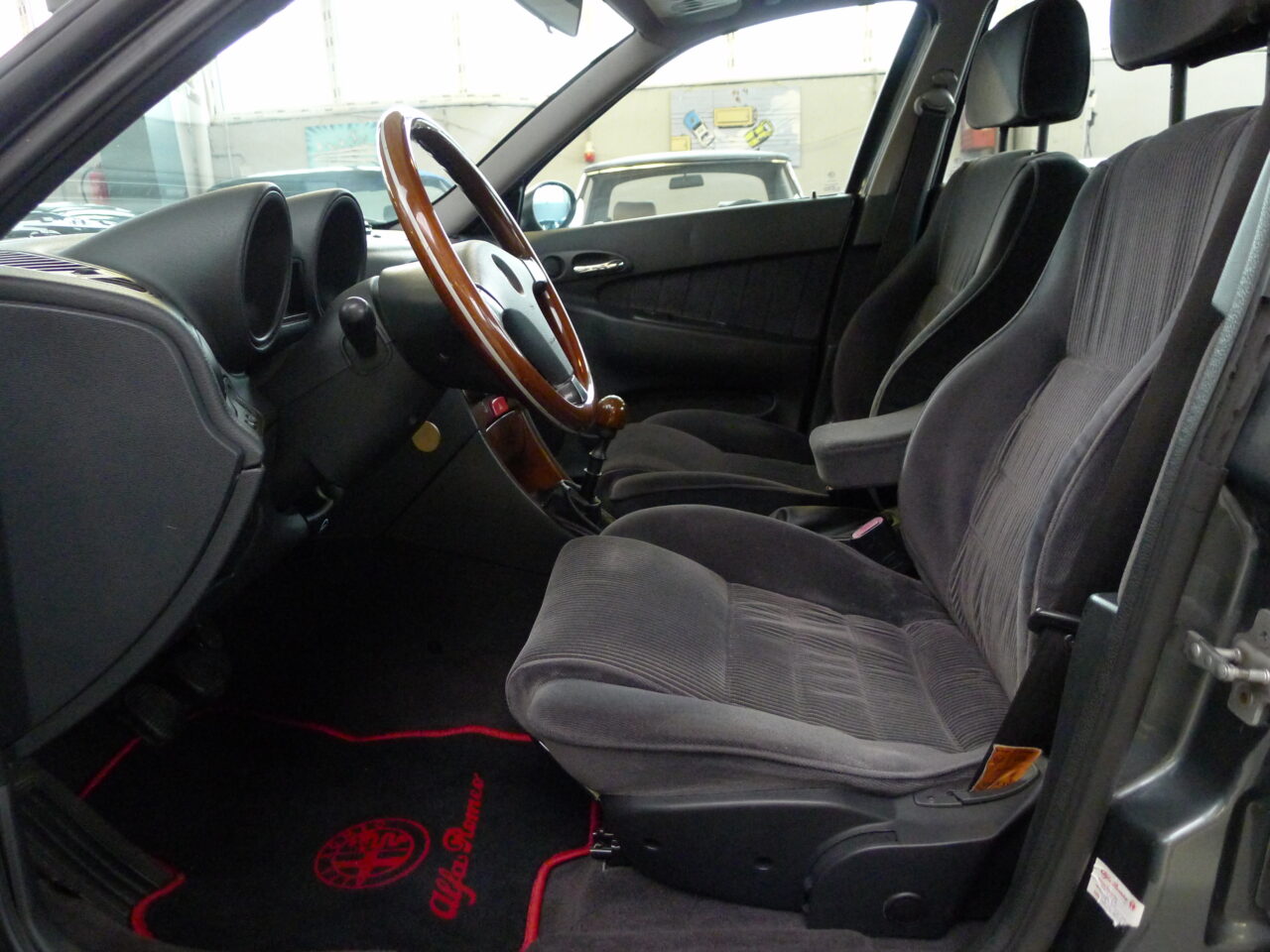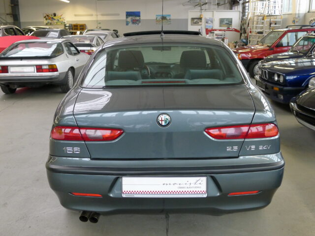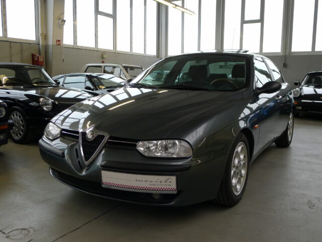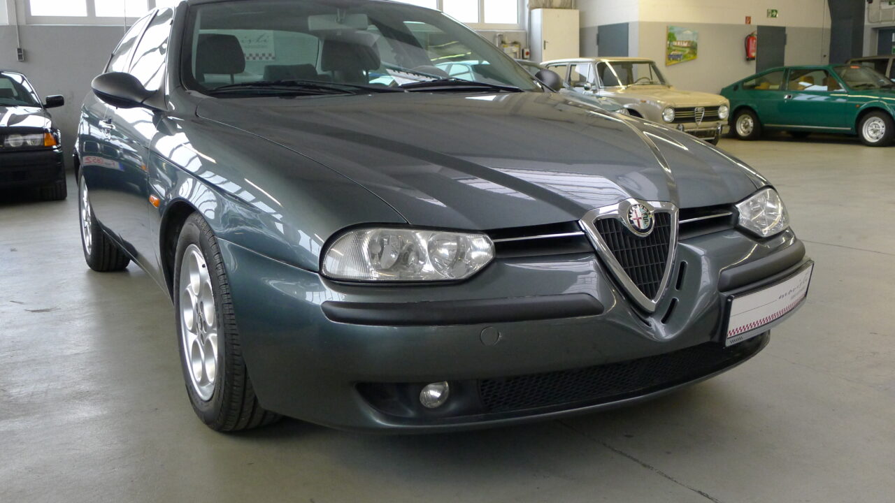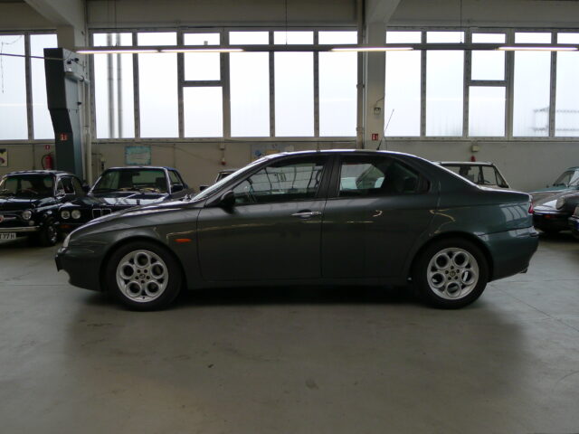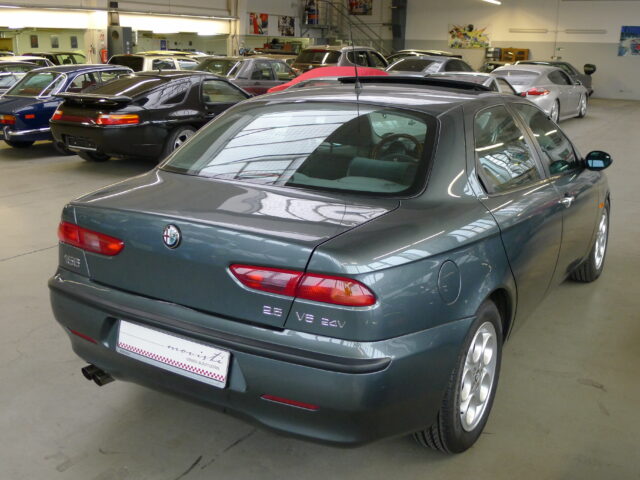 Dezent reingebrummt ist diese wunderbare Alfa Romeo 156 V6 24V Berlina, Baujahr 1999, aus 3.Hand mit 205.077 Kilometern in der wundervollen Farbe „Afrika-grau metallic“ mit einer Innenausstattung in Velours dunkelgrau und elektrischem Schiebedach.