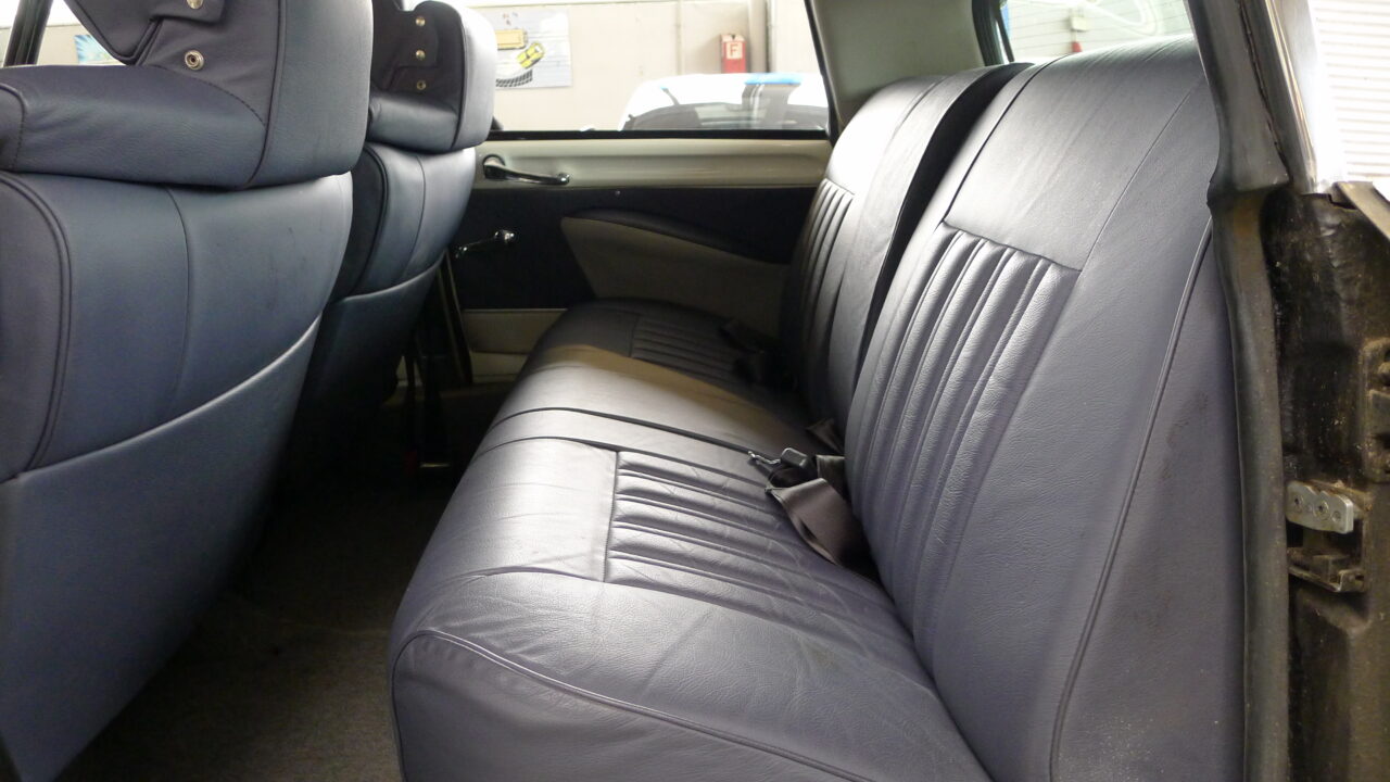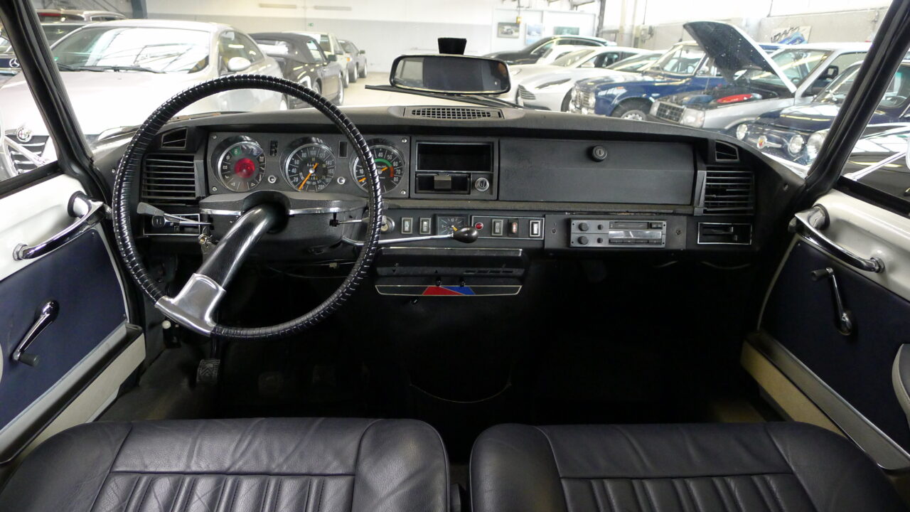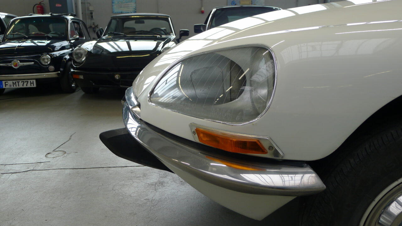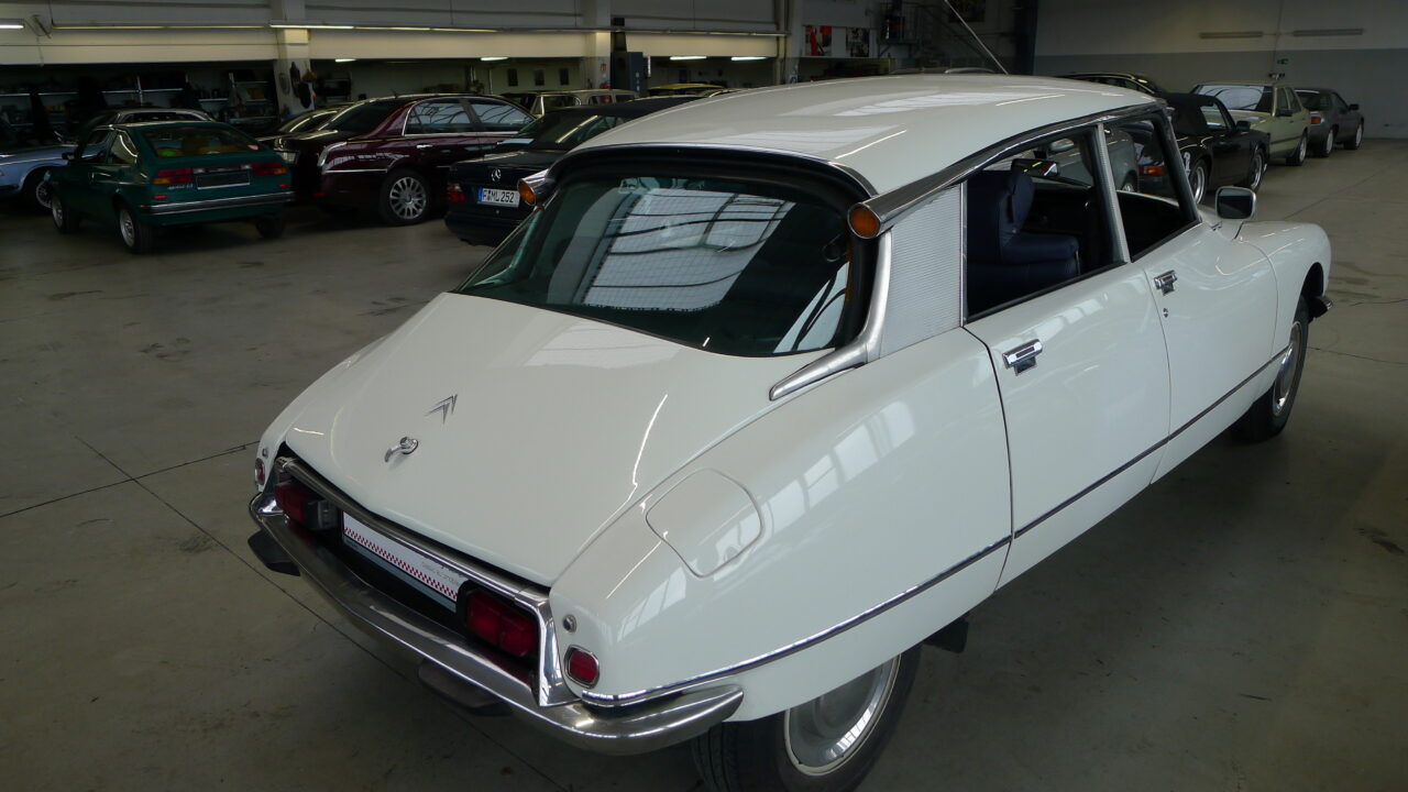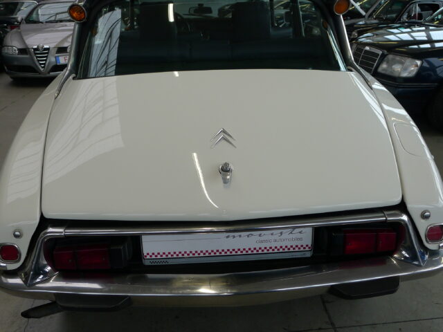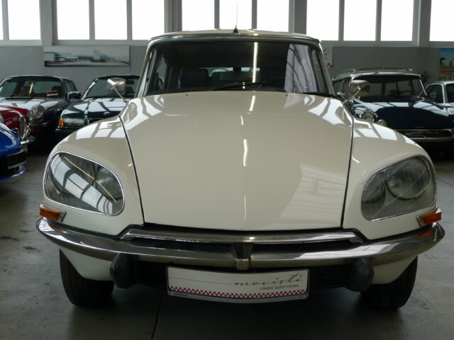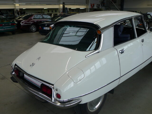 Citroen DSuper 5, aus dem Baujahr 1973 in weiß mit neuer blauer Innenausstattung aus Leder.