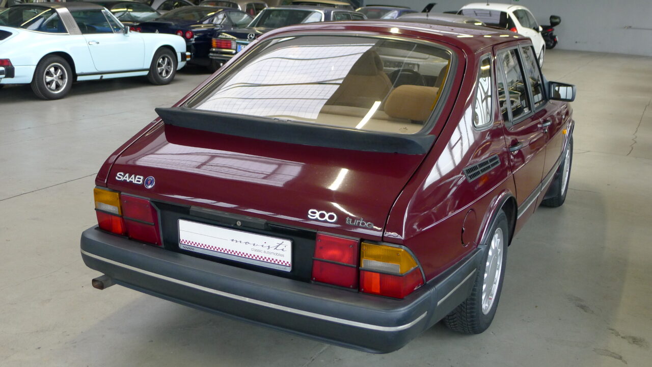 Frisch reingebraust ist diese SAAB 900 Turbo Limousine in bordeaux-rot mit beigem Stoff aus dem Baujahr 1991 in technisch und optisch sehr gepflegtem Zustand, rost- und unfallfrei mit 192.899 Kilometern Laufleistung.