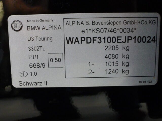 Alpina D3 Touring Biturbo Switch Tronic, 6 -Zylinder Diesel mit 350 PS und grüner Plakette Dank Euro 6 aus dem Baujahr 2014 mit erst 106.245 Kilometern Laufleistung.